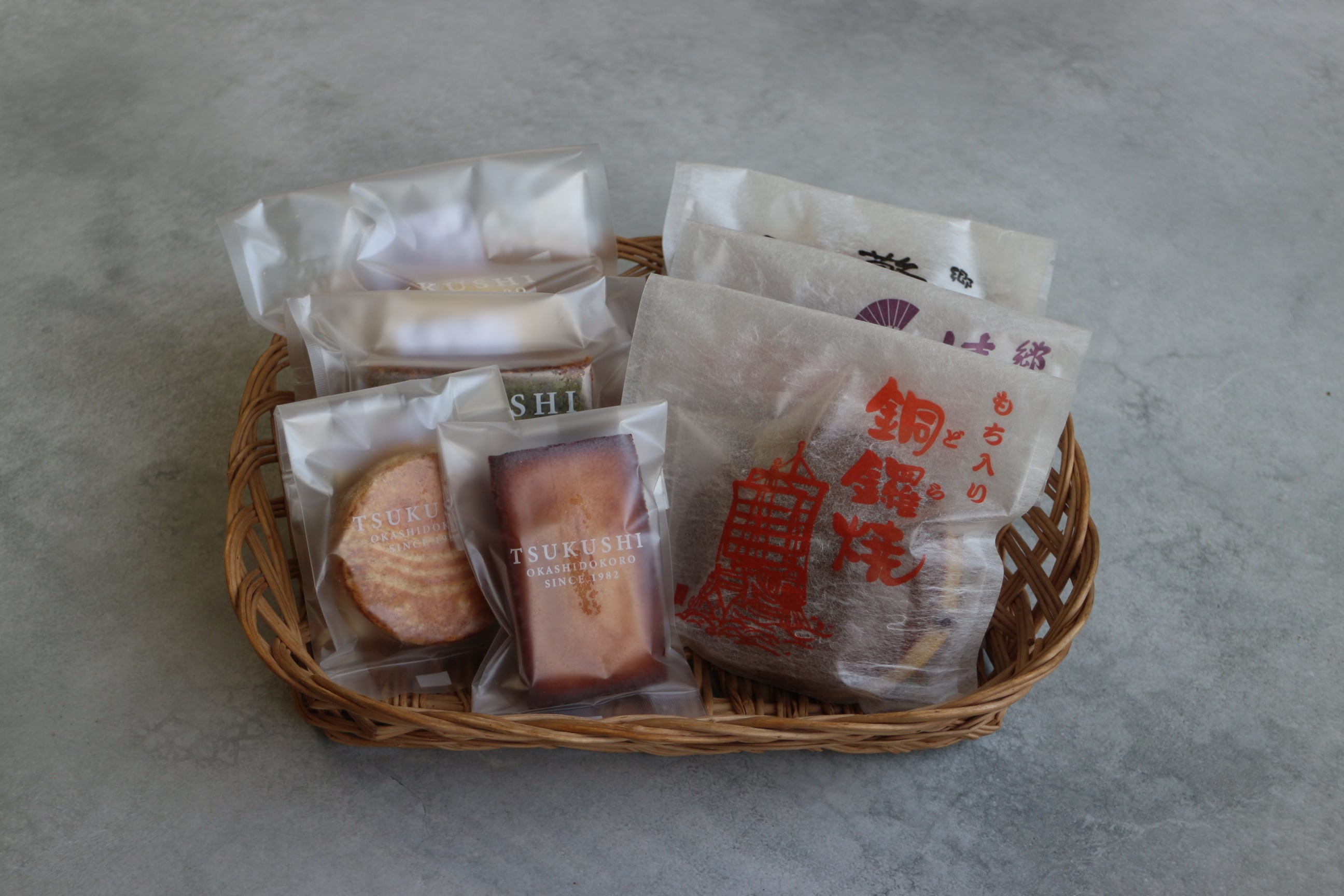 御菓子処つくしの味を知っていただきたく、こだわりの焼菓子7種を詰めあせた送料価格を抜いたお試しセットです。