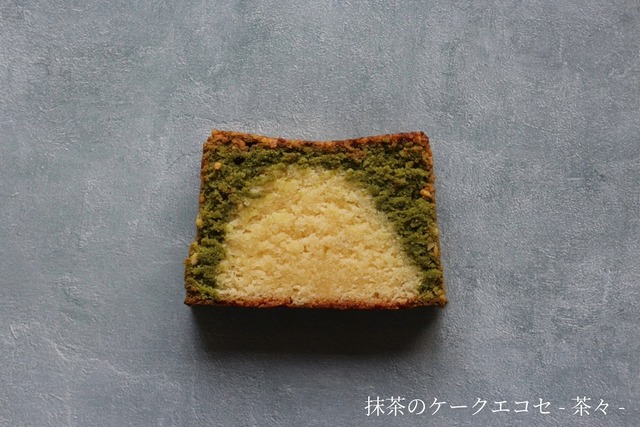 通常はココアパウダーでショコラ生地に仕上げるムランジュ生地を、和風テイストに抹茶に変更。アーモンドダイスの香ばしさと食感に、抹茶とバターの風味が楽しめる焼菓子です。