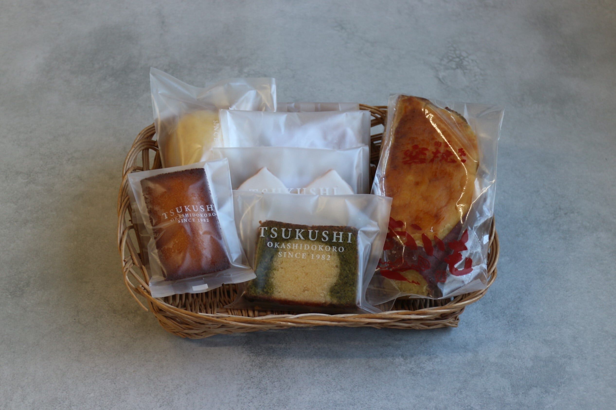 御菓子処つくしの人気商品「窯焼きおいも」に創作焼菓子「茶々」や広島県レモンを使った「広島レモンケーキ」「広島レモンクッキー」など全7種を詰め合わせました。